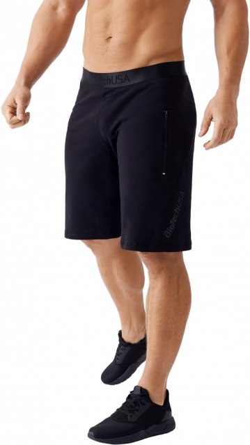 Мужские шорты, обеспечивающие удобство и свободу движений, с карманом на молнии с одной стороны. Карман на молнии с правой стороны. Эластичная талия